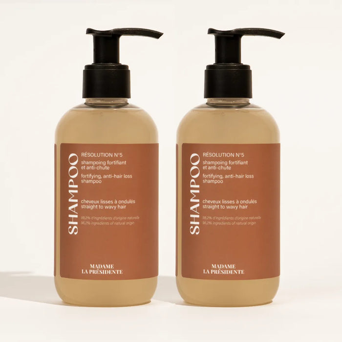 بفضل تركيبته، شامبو Resolution No. 5 المقوي والمضاد لتساقط الشعر من Madame la Présidente: يبطئ تساقط الشعر، يقوي بصيلة الشعر، يحفز نموه ، يضيف لمعاناً ويجعل الشعر ناعماً.