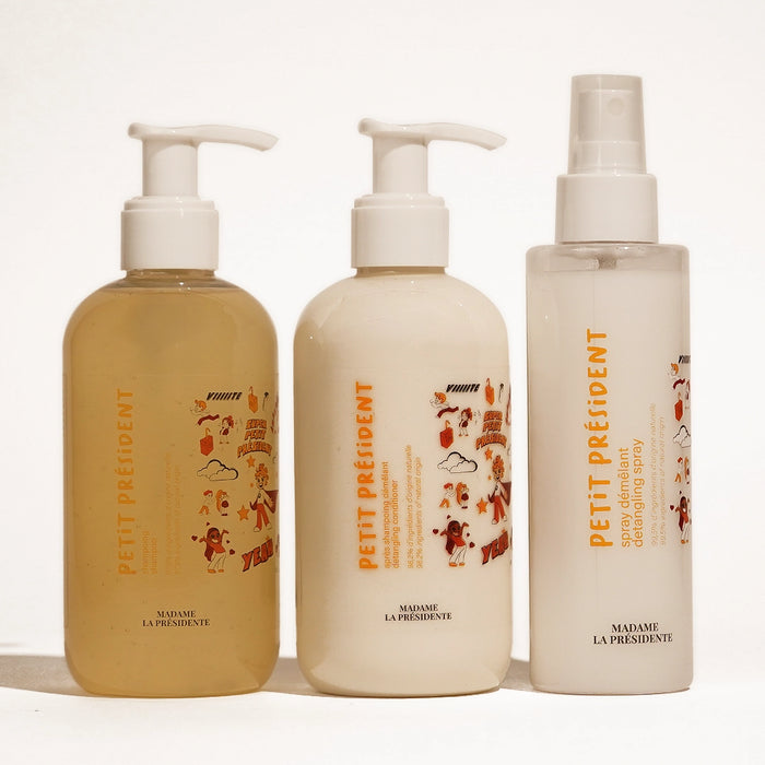 صُممت مجموعة Petit Président خصيصًا لتلبية احتياجات شعر الأطفال الرقيق ، بدءًا من سن الثالثة. تجمع بين النعومة والفعالية والطبيعية ، بتركيبات غنية بمكونات فعالة من أصل طبيعي وخالية من المكونات المثيرة للجدل (خالية من الكبريتات والسيليكون والبارابين).