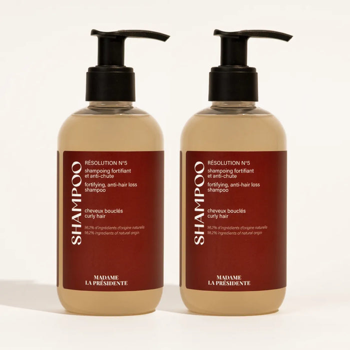 بفضل تركيبته، شامبو Resolution No. 5 المقوي والمضاد لتساقط الشعر من Madame la Présidente: يبطئ تساقط الشعر، يقوي بصيلة الشعر، يحفز النمو ، يضيف لمعانًا ويجعل الشعر ناعمًا.